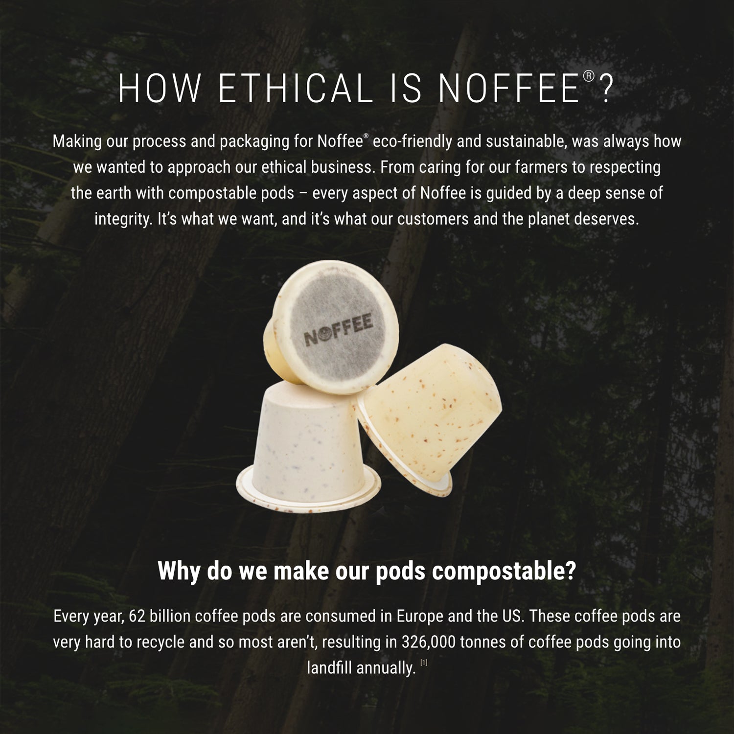 Noffee®is vegan, gluten free, chemical free, sustainably sourced, and ethically farmed.